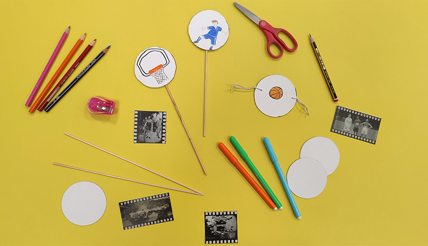 Fabrique un thaumatrope ! Actionne cet instrument d’optique à deux faces : les athlètes que tu auras dessinés s’animeront.