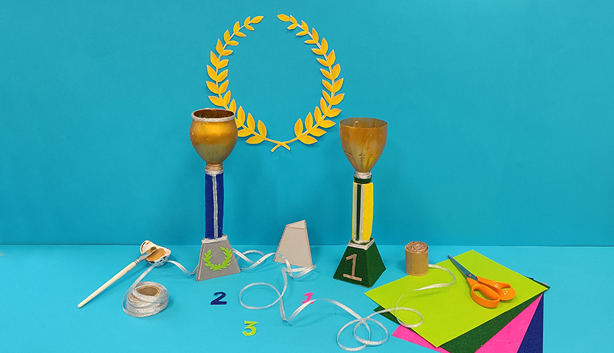 En hommage aux champions de l’exposition, confectionne un merveilleux trophée en feutrine colorée et carton.