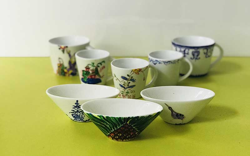 Décore des objets en porcelaine.