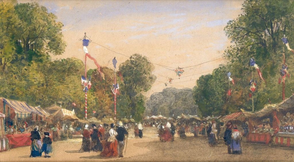 Les cartes postales de l'époque témoignent du succès de la fête foraine de septembre dans le parc mais aussi de scènes familiales comme le pique-nique dominical ou les bals en soirée.